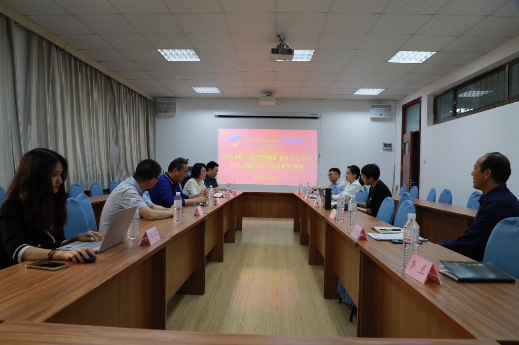 2023年5月17日下午,中国矿业大学外国语言文化91论坛副院长祖大庆教授携副院长刘婷婷、英语系主任唐书哲、德语系主任常波、教学管理办公室主任刘洁茹一行五人来91论坛