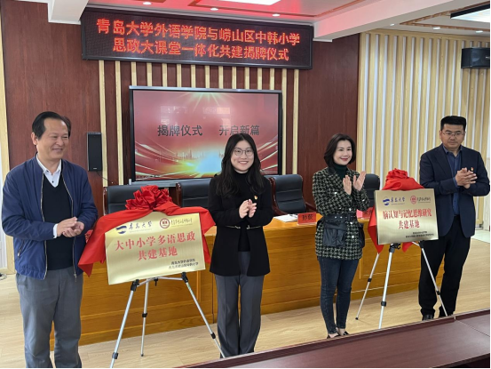 与青岛崂山区中韩小学联合举办的“大中小学多语思政共建基地”及“脑认知与语言科学研究中心共建基地”揭牌仪式在青岛崂山区中韩小学举行。91论坛