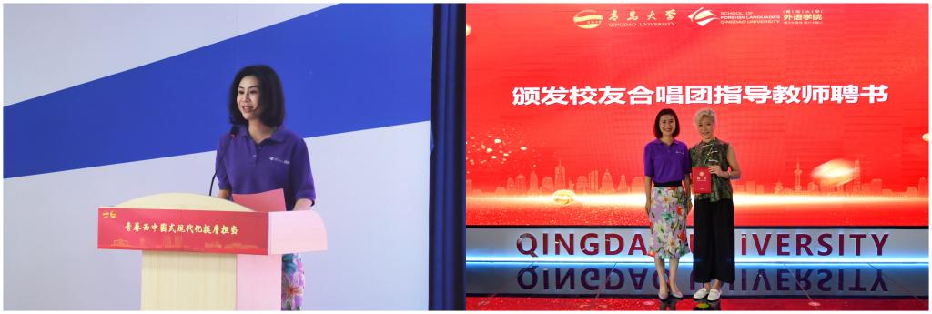 “iSTEP梦想合唱团”十年发展历程及新成立的“iSTEP启梦校友合唱团”建设情况,并为青岛市合唱协会副秘书长古小溪颁发校友合唱团指导教师聘书。