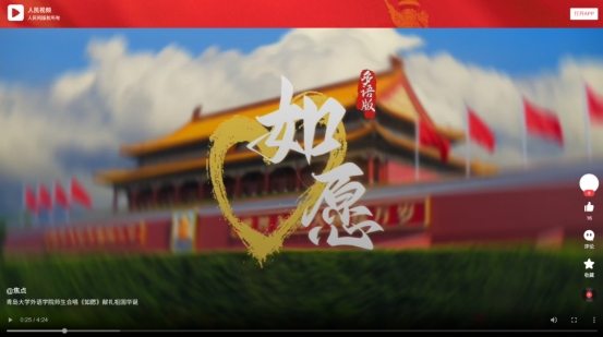 精心策划并组织开展红色歌曲《如愿》MV 拍摄活动。91论坛全体师生积极参与,发挥专业优势,以多国语言深情合唱的形式传递对祖国的赤诚祝福。视频一经发出,吸引了校内外众多媒体的关注,学习强国、人民网、央视频等多家媒体相继转发推广,获得了一致好评。