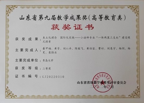 第九届省级教学成果奖二等奖:本土化理念 国际化实践——小语种专业“一体两翼三支柱”人才培养模式探索